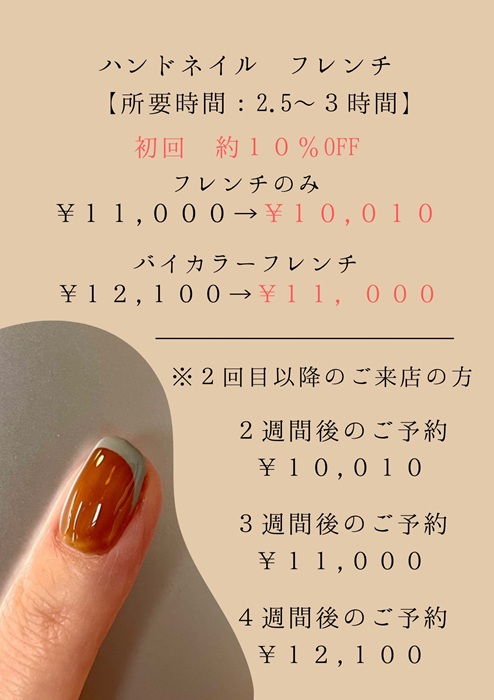 フレンチネイル【所要時間:2.5〜3時間】初回約10%OFF11,000円→ 10,010円